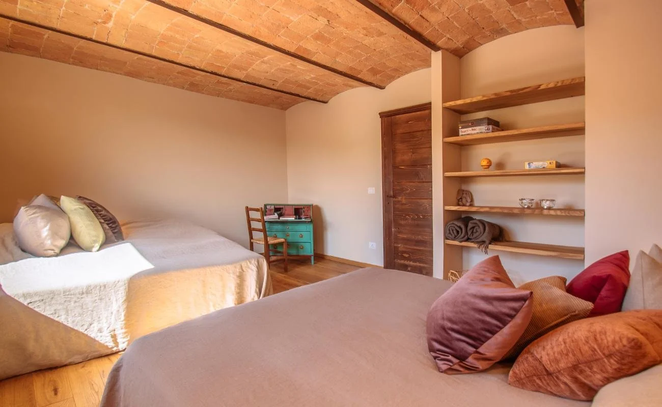 Villa Cascinotto features five comfortably appointed bedrooms that can accommodate up to 12 guests in total. Each bedroom comes with king-size beds. The rooms are bright and airy, with large windows that offer breathtaking views of the surrounding hills.