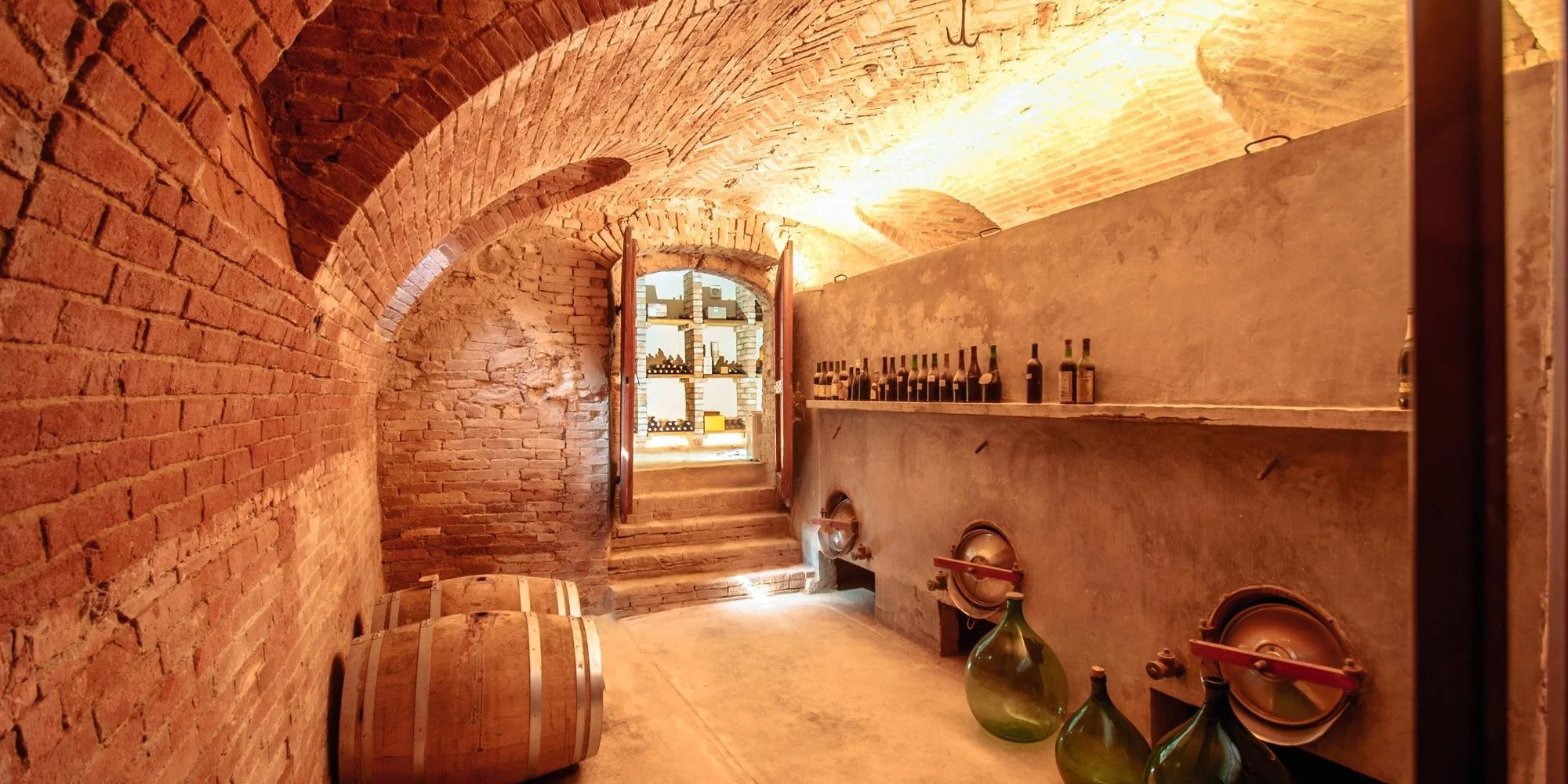 From the ground floor, there is easy indoor access to the ancient wine cellar underneath the house through elegant glass doors.